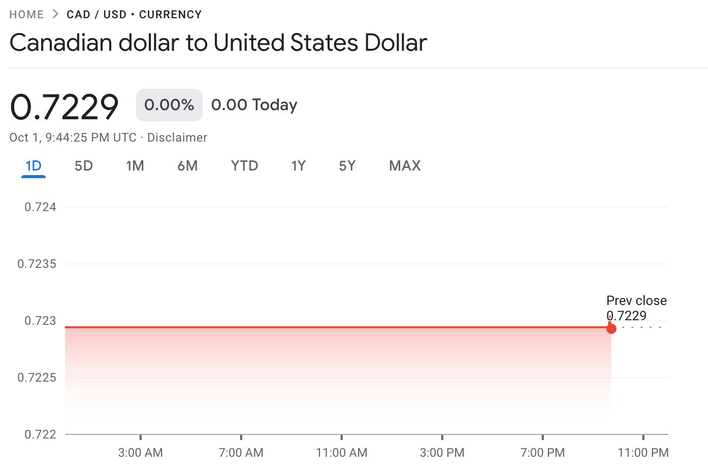 CAD/USD Currency Exchange Rate & News. Google Finance. Retrieved October 1, 2022, from https://archive.ph/XbNC3