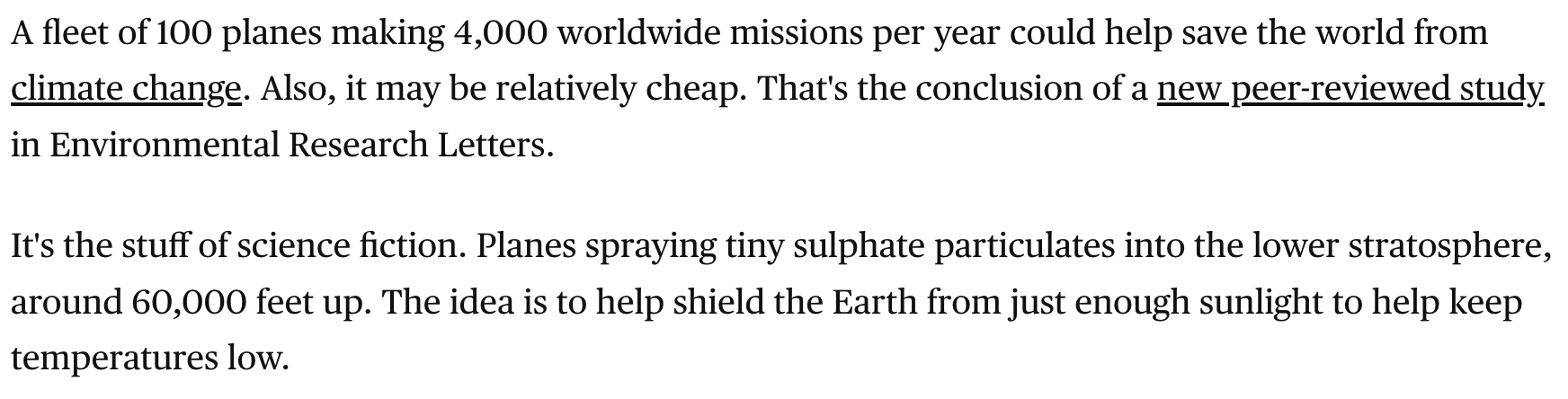 An alternative headline could be “it’s time to fight human-caused climate change with more human-caused climate change!”